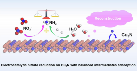 (4)该团队在期刊《Journal of Colloid and Interface Science》(影响因子:9.4,中科院大类一区)上发表题为“Enhanced electrochemical nitrate reduction on copper nitride with moderate intermediates adsorption”的研究论文。该研究基于氮化铜进行电催化硝酸盐还原,结合理论计算阐明了调控反应中间体的吸附能在促进催化过程提升中所发挥的关键作用,利用原位与非原位技术相结合手段,验证了催化剂在实际电位环境下的重构现象。魏金山副研究员为论文的第一作者,李亚运副教授为独立通讯作者,6165金沙总站官方入口为第一完成单位。
